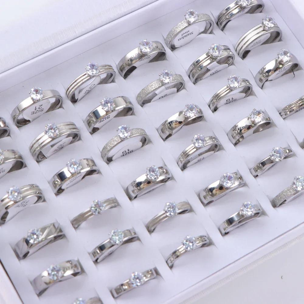 مجموعة خواتم 10 قطع الزركون الفولاذ المقاوم للصدأ